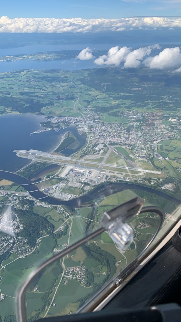 Været var marginal VFR på Østlandet, men strålende nord for Trondheim. Vi fant en luke i været for å kunne ta av fra Oslo/Kjeller. Første legg gikk til Harstad/Evenes. Nonstop. Med god medvind skulle det bare ta cirka 3,5 time.