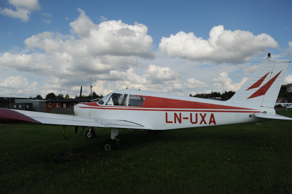 Så kikker Kvade de hundre meterne bort mot gresset der hans første flymaskin står; LN-UXA. En Piper PA-28 140-hester Cherokee.