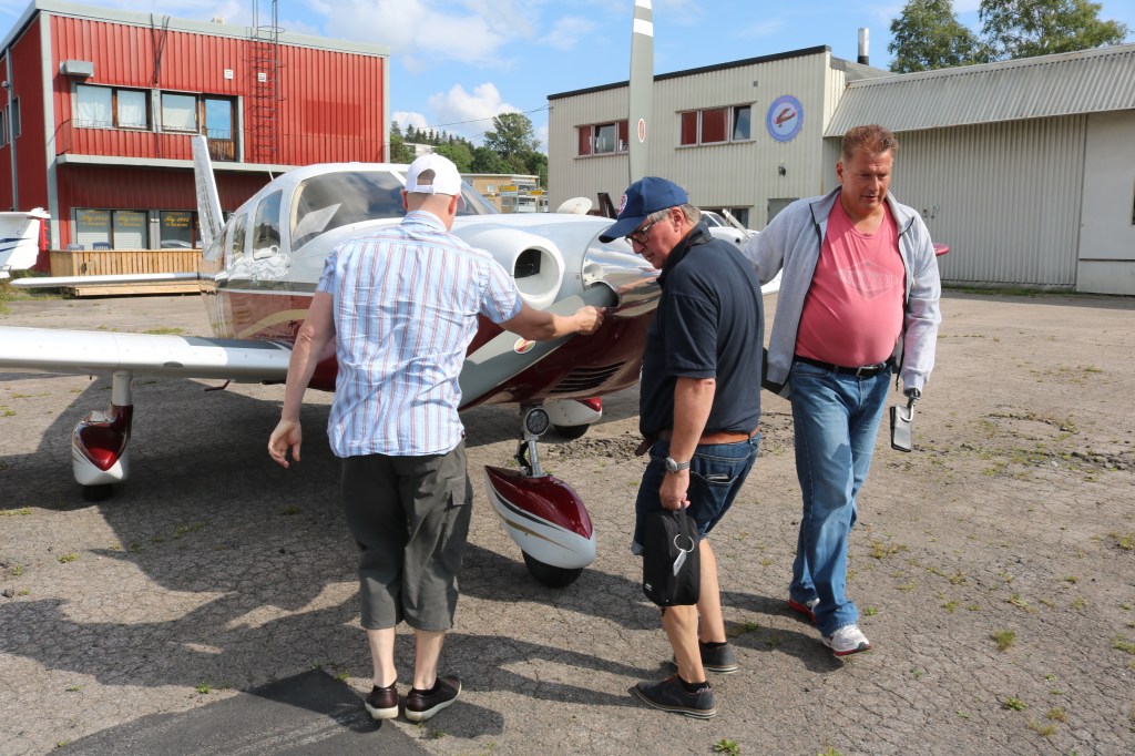 Første fysiske grep for mange GA-piloter er gjerne å trekke flymaskinen til en trygg startposisjon. At to andre her bistod, skyldes faktisk bare at flyet veier litt over 800 kilo tom og hadde en ekkel betongkant foran nesehjulet.