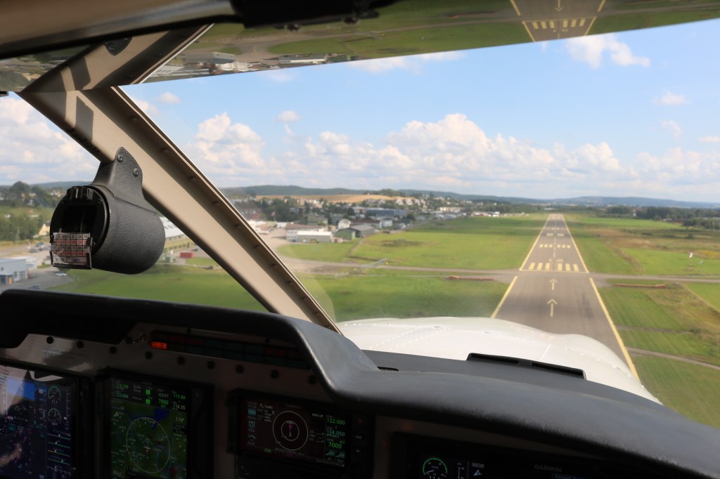 54-åringen flyr stødig etter boka. På baselegg er vi imidlertid litt høyt. Han legger på under ti knop på hastigheten for å ha litt margin til vindkast.