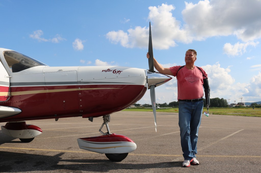 I dag femtifire år senere sitter Flymagasinet om bord i hans egen flymaskin. Det er han som styrer den ut over Øyeren en flott sommerdag. På venstre stikke har han koblet protesen til «trailerkula» og har god kontroll.