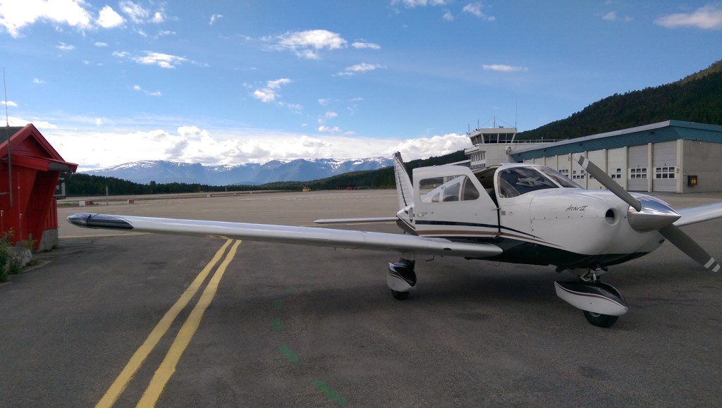 -Da vi ankom Flesland neste dag med bussen, slet vi med å finne porten inn til GA-området. Men en flyger fra Bergen Aero Klubb kjente oss igjen fra ankomsten og slapp oss inn. En ny utfordring var mangel på papir i fuel-anlegget; vi trengte kvittering.