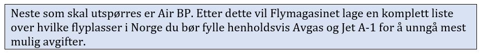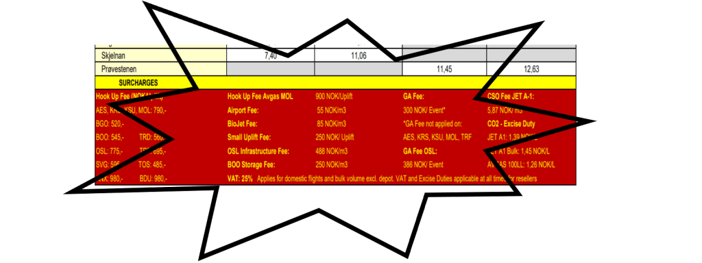 3. Airport Fee – for ALLE flyplasser og ALL type fuel?