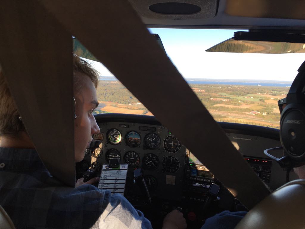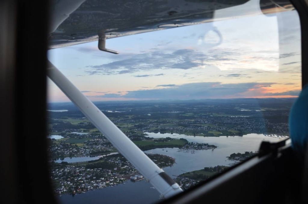 -Gleden ved flyging er en blanding av det å kjenne på stalls og at flyet beveger seg. Samtidig kjempedigg – med det vakre å se utover havet fra stor høyde. Se forskjellene i dypt og grunt vann særlig her ute blant øyene utenfor Tønsberg og Sandefjord.