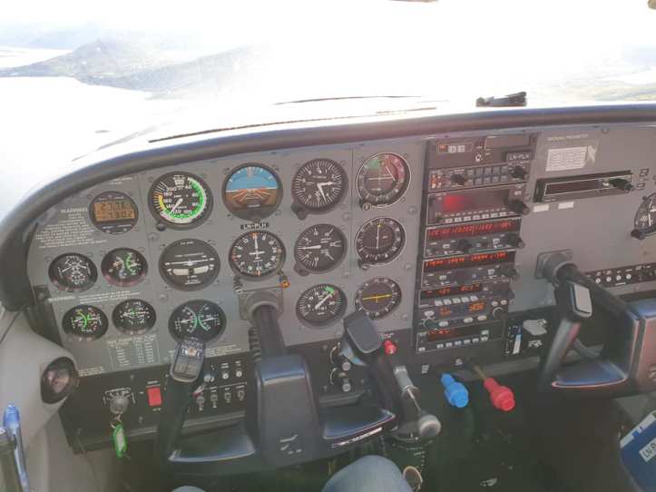 -På Torp kunne jeg, etter en typeutsjekk med instruktør, klatre om bord i min egen LN-PLH og fly den nordover på fem flytimer sammen med mekaniker Ronny, som kom ned med SAS. Tankene på flyet rommer 330 liter, så rekkevidden er der.
