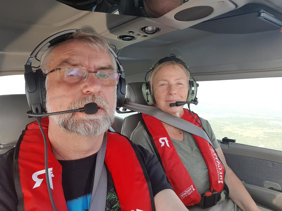 -Ja, viktig å få med kona, som GA-piloten Yngve Johnsen sier med et smil.