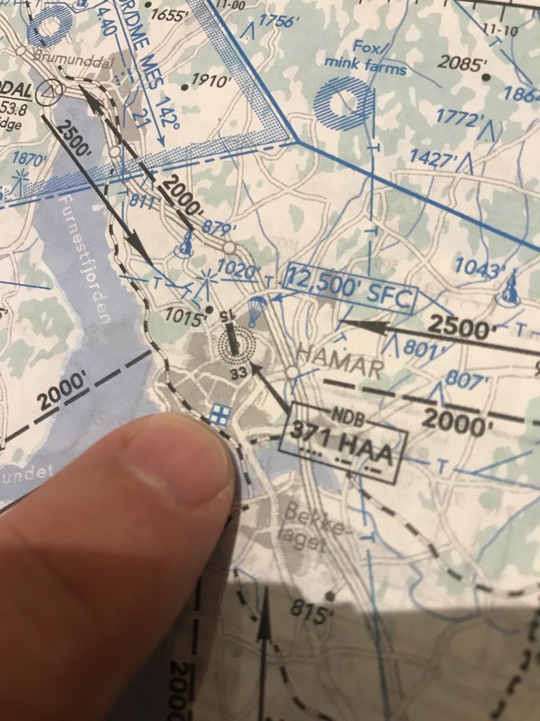 På denne måten har du nærmest gitt deg «utsjekk» på de ulike plassene. Skulle det utrolige skje at motoren enten stopper ETTER at resterende bane er under nesa og høydemåleren IKKE har nådd sikker høyde for å snu, så setter du kurs rett for «stedet ditt».