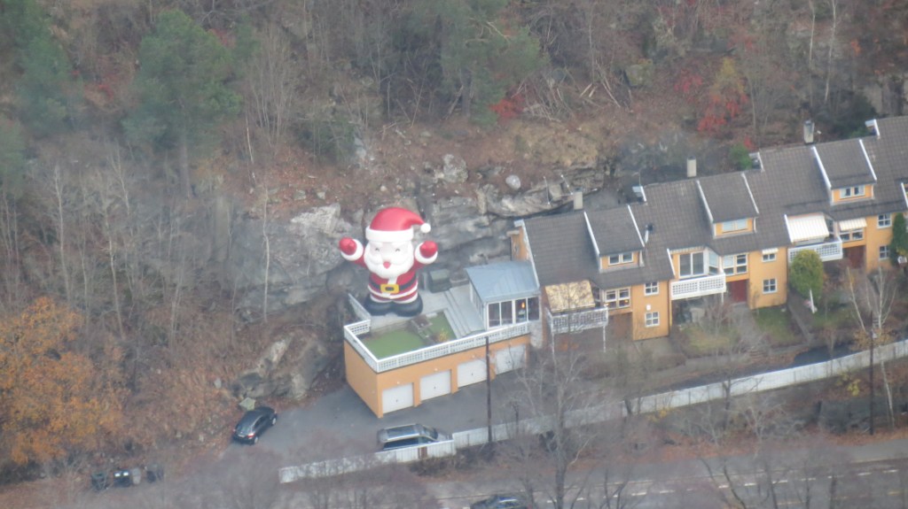 Høyt oppe i et GA-fly med 260 knop mot Oslo synes himmelen å være tom. Piloten er dansk og huser kanskje hovedstadens største julenisse. Når vi descender jevnt inn mot Kjeller sees nissen som er like høy som huset.