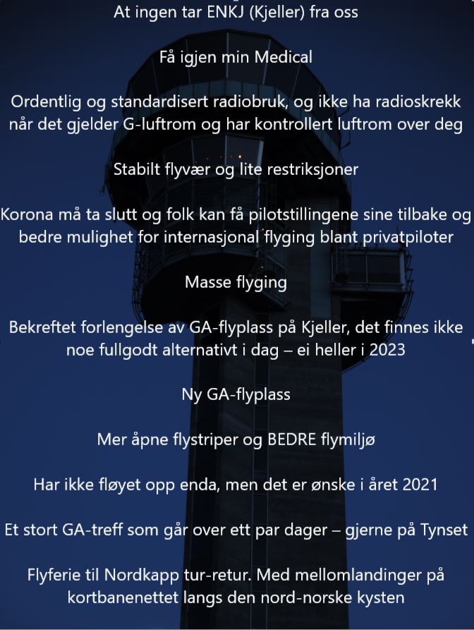 Med vaksine mot Covid-19 på plass, er det ikke minst plass for de sedvanlige nyttårsønskene. Det er liksom i dag vi nikker til venner og ønsker hverandre «godt nyttår». Allmennflymiljøet (GA) er særlig klare for et nytt år.