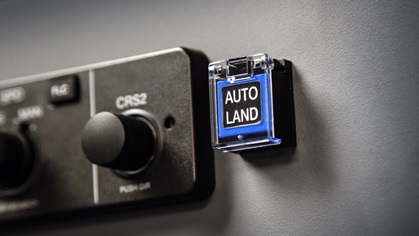 På gliebanen kommer hjul og flaps ut automatisk. Autopiloten følger vinden inn med rett skråvinkel (crab) og retter opp som du ville gjort selv. Takket være radarhøydemåler leses høyden over banen og maskinen flater ut selv og trotler tilbake etter landing.