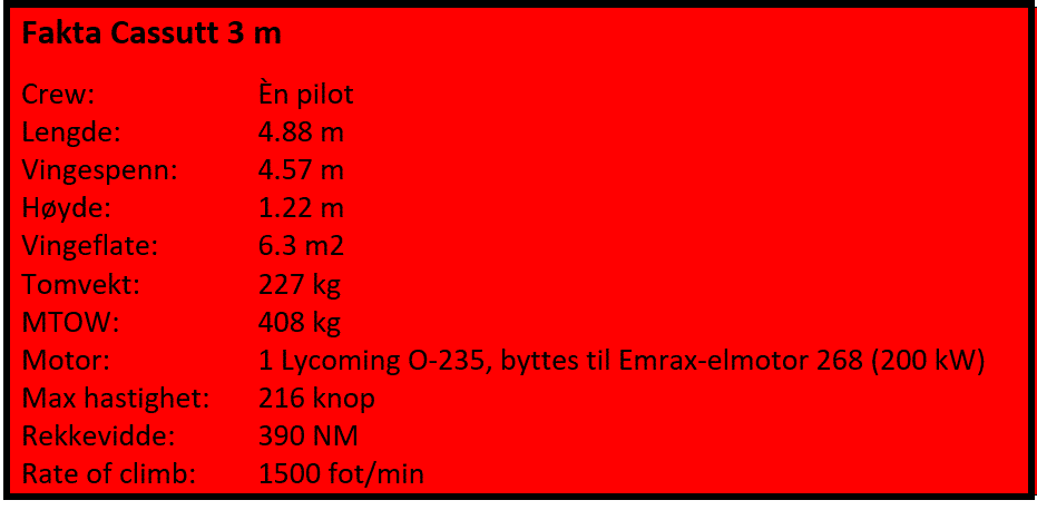 Til dette er flymaskinen Cassutt valgt ut.