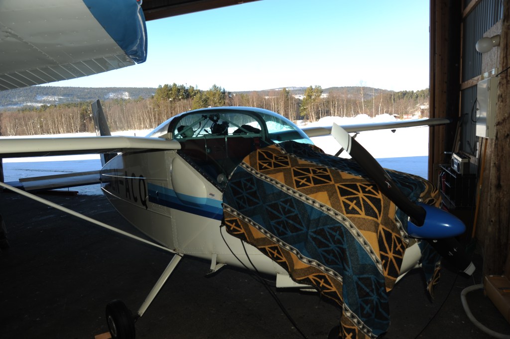 Da lar du flyet stå her inne så lenge som mulig. Bruk en liten kabinvarmer og legg den på gulvet i cockpit. Lukk igjen cockpit. Ikke legg papirer eller tekstiler (klær) på setene som kan falle på ovnen. Ha gjerne ett stormvindu eller ha noe på gløtt slik at fuktighet slipper ut.