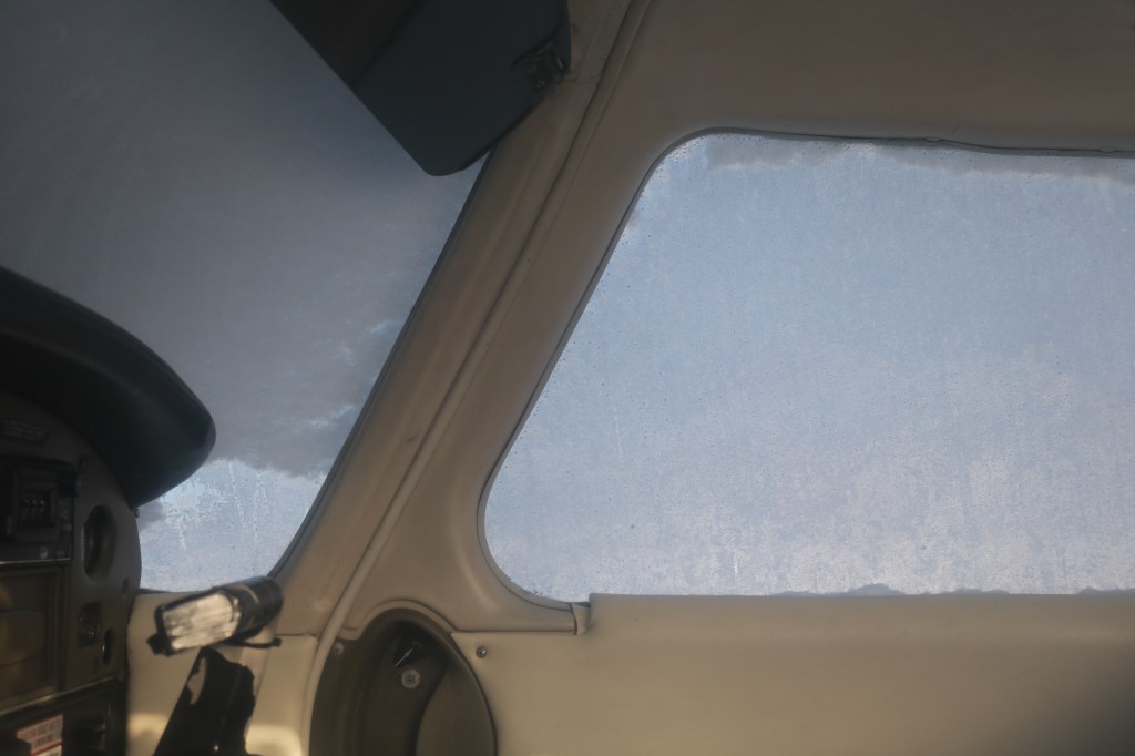 Er det i tillegg minusgrader i cockpit, ja så fryser duggen fort til rimis.