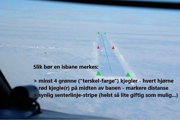Når du ankommer isbanen, send naturligvis på radio om de har en egen frekvens. Likevel må du alltid planlegge og utføre en lav overflyging som både indikerer for eventuelt mennesker og aktivitet på isen, at du akter å lande.