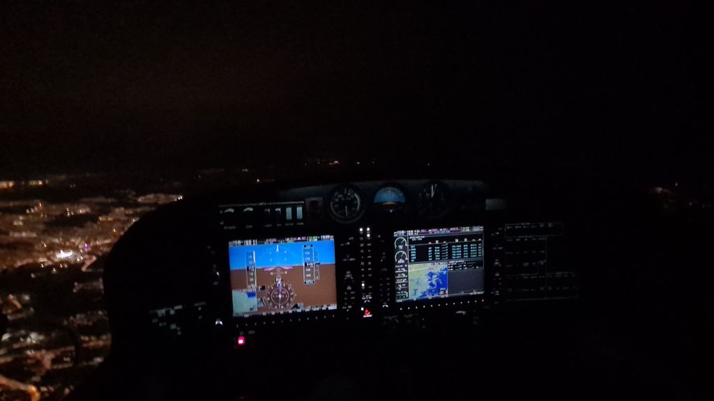 Nå var ett av tre krav for å få VFR Natt-utsjekk gjennomført og det gjensto kun én time navigasjonstur som må være lenger enn 27 nautiske mil og en total flytid på fem timer natt. Da vi allerede hadde en og en halv time flytid, så gjensto det tre og en halv.