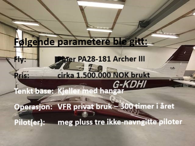 Når kontakt var etablert, fikk de servert en fiktiv sak der «Per Hansen» er en pilot som vurderer kjøp av et brukt småfly fra England. Litt snaut av informasjon fra vår side, men vi søkte altså om et «tilbud eller overslag» til en forsikring for et mulig kjøp.
