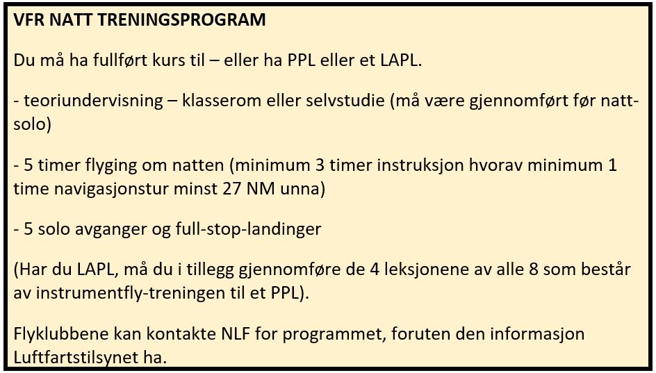 Etter landing klokken 23.02 så hadde jeg logget fire timer og fem minutter nattflyging. Så det var fortsatt 55 minutter igjen. Men vi hadde en plan. Problemet med planen var at alminnelig tussmørke begynte 07.25, og da er det ikke lenger natt etter flygereglene. På Kjeller kan vi dessuten ikke lande før klokken 08.00.