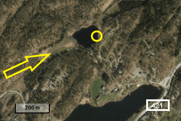 Falk-Petersen holdt hodet kaldt og hadde med god airmanship allerede sett ut områder med nødlandingsmuligheter. Men på vei ned mot disse, innså han en for stor høyde. Løsningen ble et mindre tjern på baksiden knappe to nautiske mil fra rullebanen, der han landet på vannet.
