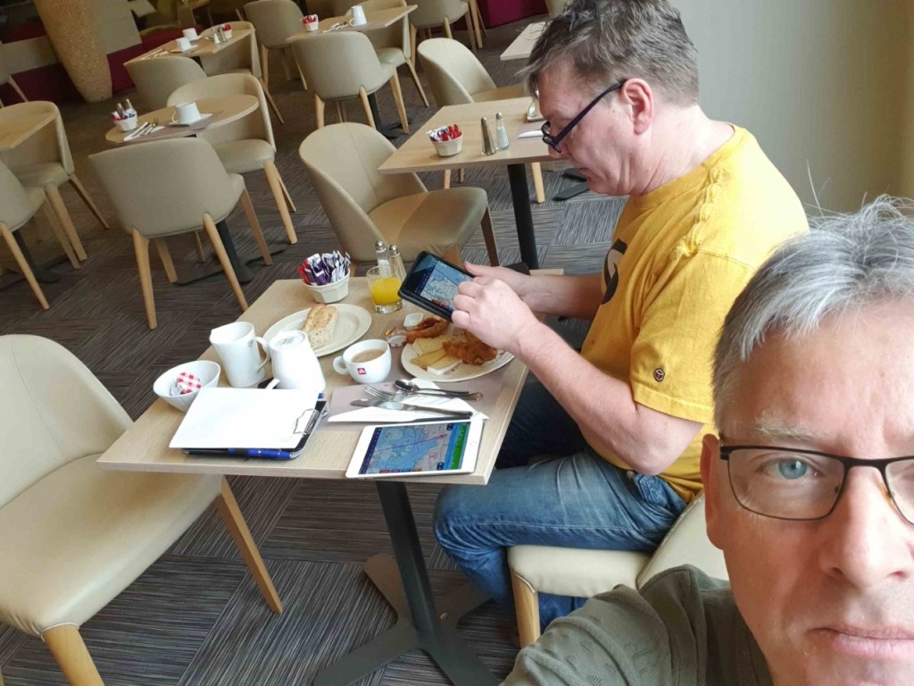 På Lübeck ble det en god lunsj på kafeen. Vi traff et par britiske piloter som skulle hjem fra Sverige med sin Cessna. De måtte skynde seg slik at de rakk å krysse kanalen før noe heftig vær kom. Men det hørtes mest ut som om det nok ble noen dager ekstra i Nederland for noen VFR-planer er faktisk for optimistiske.