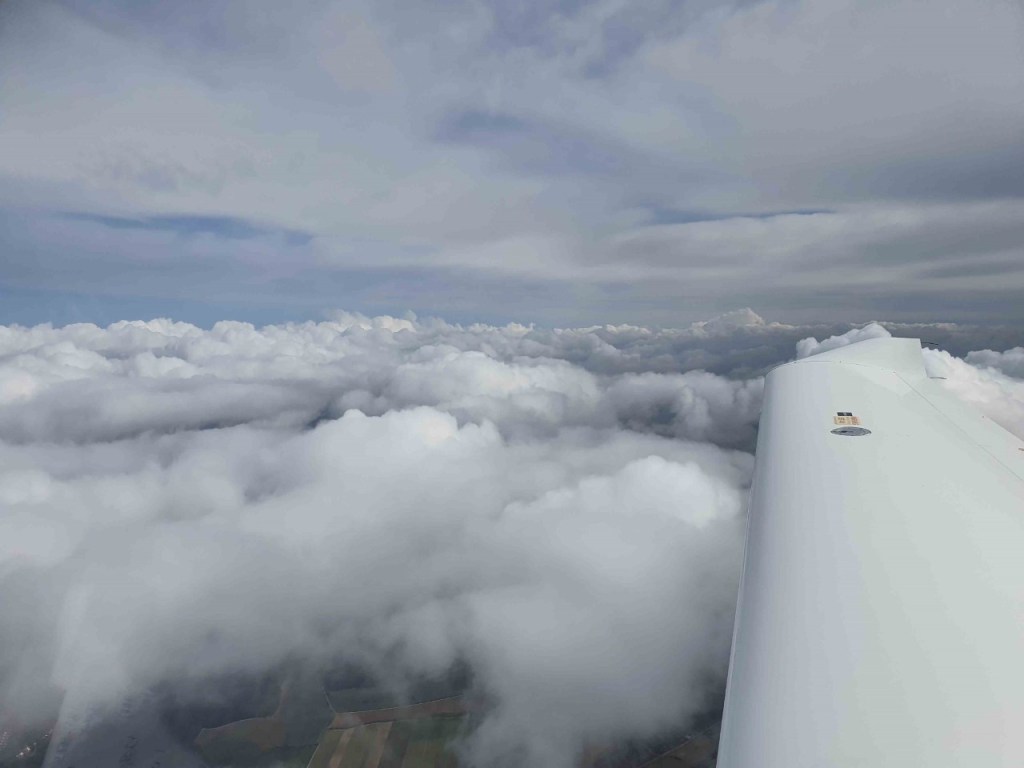 I god VFR-høyde. Litt on top, med gode hull i skydekket mange steder, og etterhvert mer og mer oppklarning. Herlig.