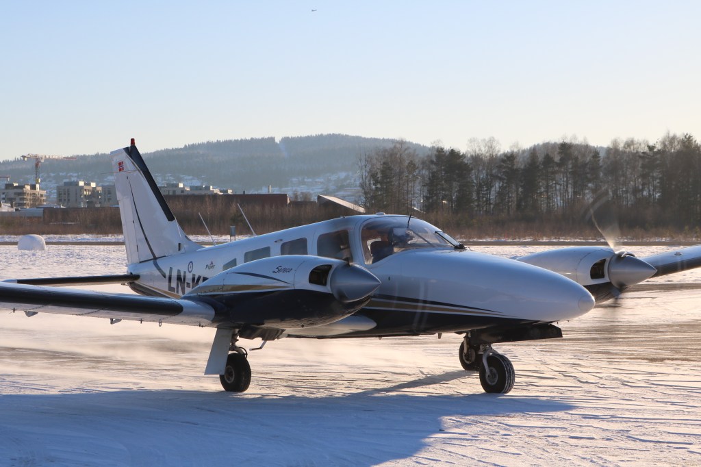 Forleden dukket en maskin opp på Kjeller i vintersolen. LN-KLP er en Turbo Seneca registert i fjor.