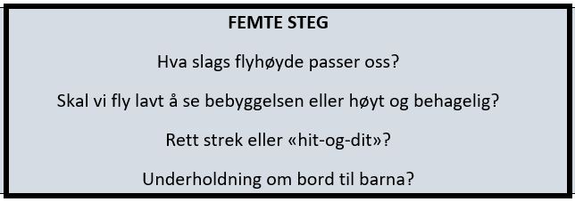 Det enkleste er som kjent en rett strek, noe jeg oftest gjør når jeg flyr selv i Europa. Men i vårt tilfelle bruker jeg to «unnskyldninger» til ikke å gjøre det.