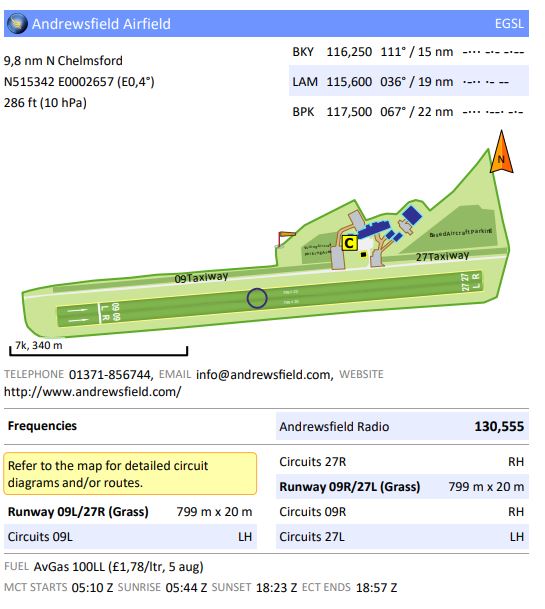 Andrewsfield er kjent også blant enkelte norske GA-flygere fra ferieturer. Regionen har flust av flyplasser med historie fra verdenskrigen.