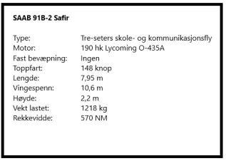 SAAB som står for Svenska Aeroplan AB (altså kom flyet før bilen…), ble stiftet 1937. Likevel gikk det åtte år før den første turen med en slik 91A-versjonen gikk fra flyplassen utenfor Gøteborg. Trukket av en 130 hestekrefters Gipsy Major 10-stempelmotor kjente de at dette var for slapt.