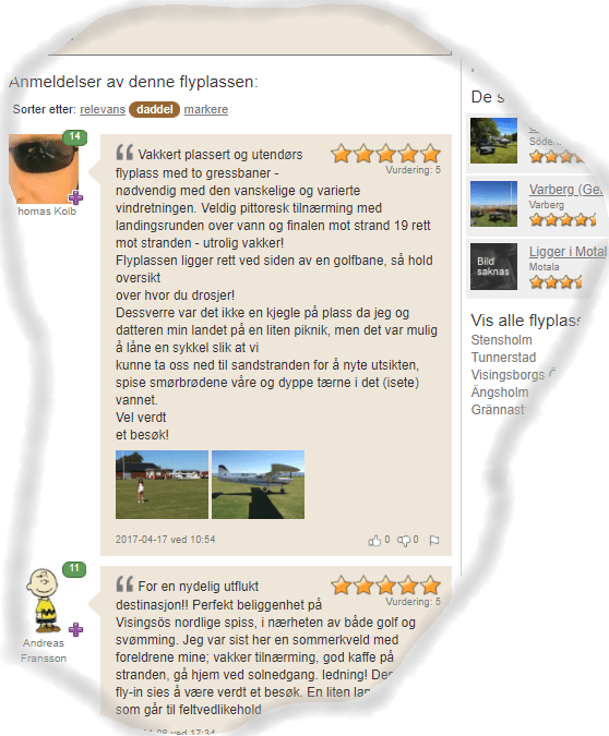 Der det i Norge er gjerder, har svenskene heller en grind. Der nordmenn står tause langs banekanten, byr svenskene på «fika». Og der norsk ATC skal kontrollere VFR selv ned til granitten, har svenskene det høyt under taket (TMA-gulvet). Der norske flystriper som Rakkestad tar hele 300 kroner for en landing, er flere slike plasser i Sverige enten gratis eller halve prisen.