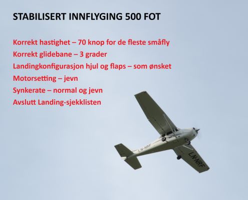 Gjør dette før 500 fot, slik at du da kan «rope ut» (callout) «500 – stabilized».