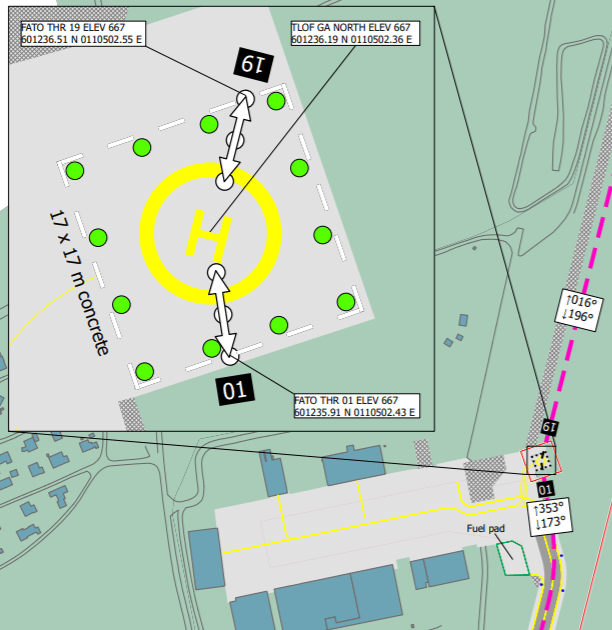 De nøyaktige tallene og kartene kommer senere, men etter alt å dømme vil innflyging- og utflyging fra helipaden kalles 01 og 19 i samsvar med rullebanestrukturen på resten av flyplassen.