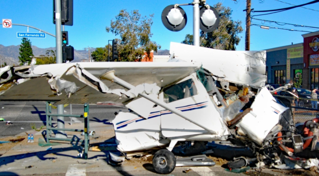 Denne ulykken skjedde i går i forstaden Pacoima utenfor Los Angeles i USA. Den eldre piloten rakk bare å kalle «56 Lima mayday, mayday […] mayday..» og la til «…the railway track«. Like etterpå begynte andre fly og rapportere ulykken.