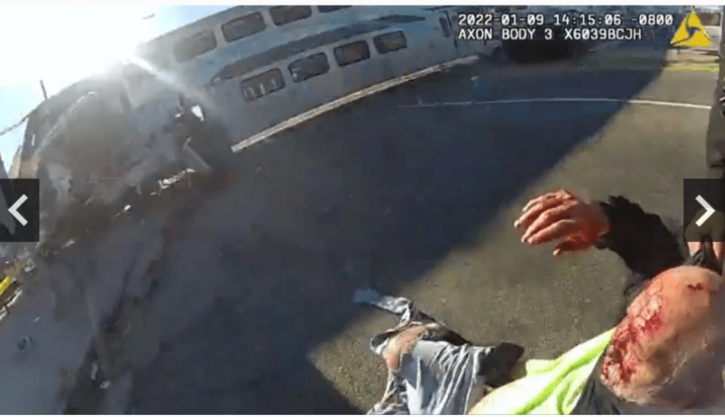 Politipatruljer på stedet var uhyre raske og snarrådige og gikk i gang med å først komme inn i vraket av cockpiten for så å finne piloten hardt skadd, men i live. Plutselig går bommene ned og toget høres tutende like unna.
