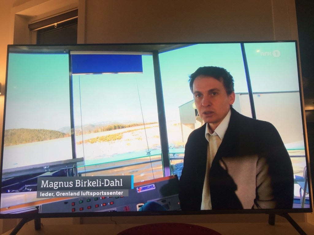 Magnus Birkeli-Dahl er styreleder i luftsportssenteret og ble intervjuet i kontrolltårnet av NRK i beste sendetid i går og roste dugnadsånden høyt: