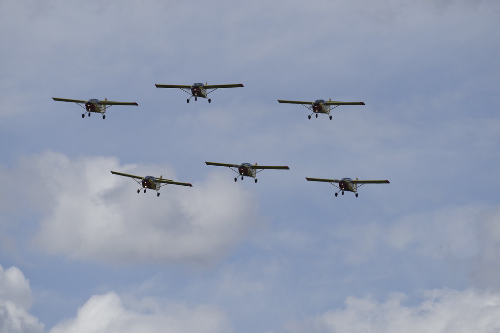 Mer enn 32 fly viste seg frem over rullebanen; Extra 300, Spitfire, Mustang, Dakota, Politihelikopteret, elflyet LN-ELB og ikke minst formasjoner med Flyskolens Saab Safari, Cub`er og andre.
