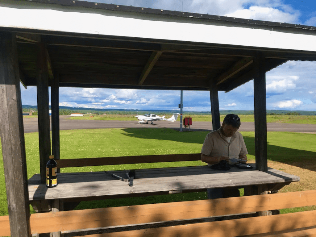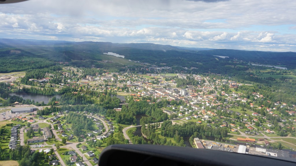 Vi booket et småfly og satt kursen fra Kjeller til Torsby flyplass (ESST) i Värmland i Sverige. En slik knapp halvtimes internasjonal flyging kan bli hektisk selv med to piloter foran. Frekvenser, åpne flightplan, navigasjon, grensepassering, briefing til ny flyplass og litt urolig sommerluft gjør at 20 minutter på cruise går fort unna. Men det er jo moro!