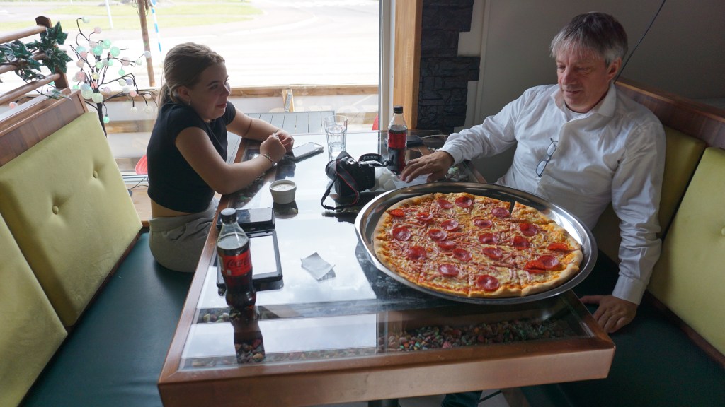 Nede i hovedgaten møter vi på Pizzeria Ararat i Järnvägsgatan, og sulten styrer oss rett inn uten de normale «kvalitets- og konkurrent-sjekkene». Her blir vi tatt imot med to blide svensker som bare har smil og «ja» i sin munn.